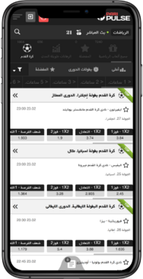 التنقل بين الأقسام سريع وسلس. أقسام المراهنات قبل المباريات والمراهنات المباشرة لكلٍ منها مساحة مخصصة، بينما تتضمن المباريات داخل كل قسم نظام تصفية عملي وسهل الاستخدام. يتم عرض الرياضات المتاحة بترتيب أبجدي، وعند الضغط على أي رياضة ستظهر جميع البطولات المتوفرة، مما يجعل تجربة PariPulse مراهنات واضحة ومنظمة.